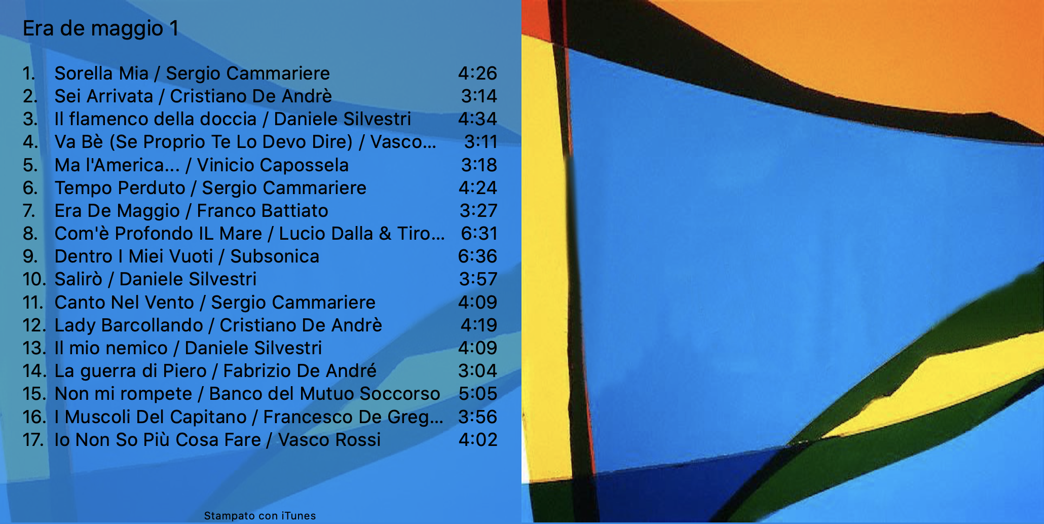 Era de maggio cover Pubblicato 03/05/2020-con dimensione 2060 × 1034 in Era de maggio – UNO Navigazione immagini Precedente Condividi:Tweet Fai clic per condividere su WhatsApp (Si apre in una nuova finestra) WhatsApp Fai clic per inviare un link a un amico via e-mail (Si apre in una nuova finestra) E-mail Mi piace:Mi piace Caricamento... Scopri di più da Casa Bastiano Abbonati per ricevere gli ultimi articoli inviati alla tua e-mail. Digita la tua e-mail... Iscriviti