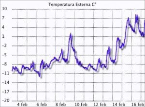 Oggi temperatura ancora miti, ormai non si va sotto zero da 2 giorni: massima 6.44 °C minima 1.11 °C