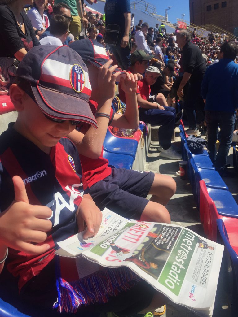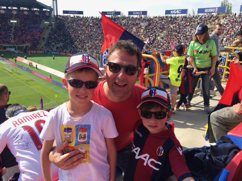 Ci sono stati anche momenti bui nei quali il mio tentativo di farli avvicinare al Bologna ha rischiato di finire miseramente. Ricordo un Bologna – Cittadella di Coppa Italia allo stadio con Annalisa ed i bimbi in cui Verdi, idolo di Giacomo, venne espulso dopo pochi minuti (con Giacomo piangente sugli spalti consolato da Annalisa) e il cui risultato finale fu un sonoro 0 – 3.
