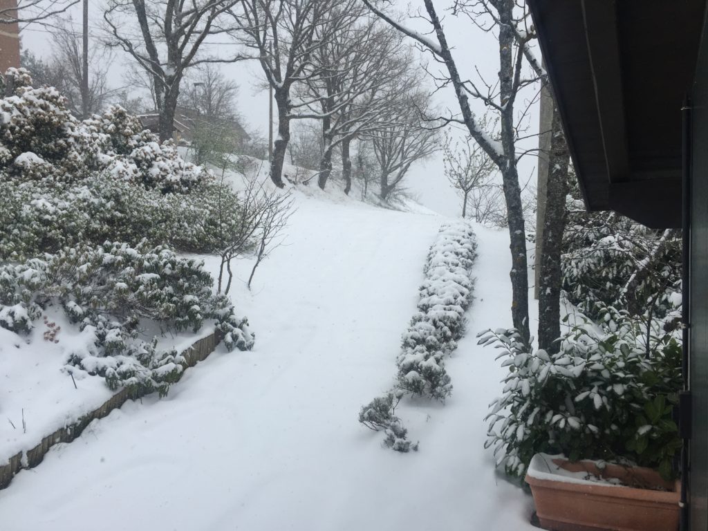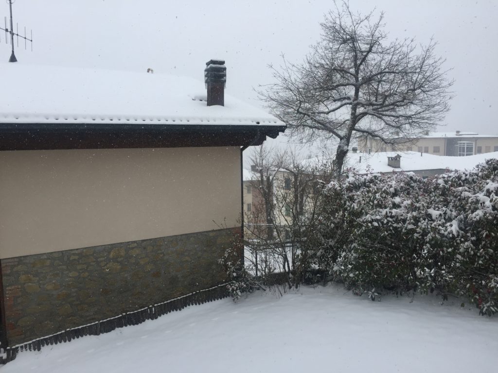 L’inquadratura della foto è la stessa di ieri, ma la neve è un po’ di più.