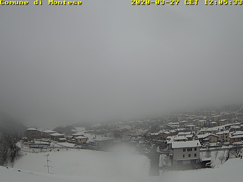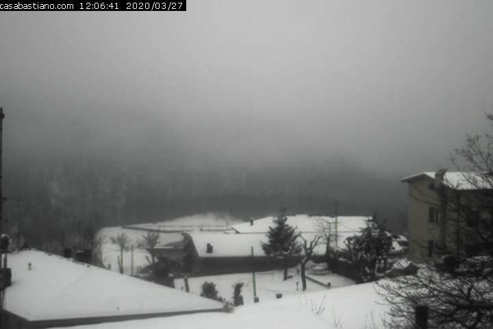 Continua a nevicare debolmente a tratti, ma presto si trasformerà tutto in pioggia. Le webcam iniziano ad essere più grigie che bianche e mostrano rispetto a ieri circa 10 cm in più di neve.