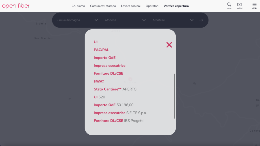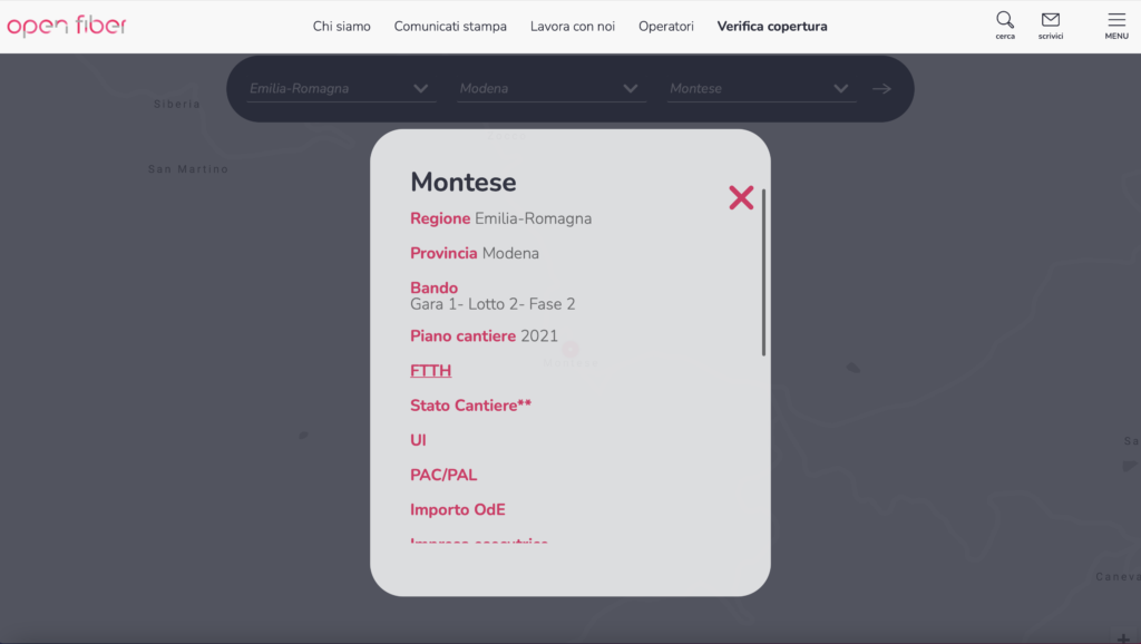 E’ per questo che, guardando oggi la mappa della copertura del Comune di Montese pubblicata sul sito istituzionale bandaultralarga.italia.it rimango deluso nel non vedere ancora quali vie del paese saranno coperte dalla fibra e nell’apprendere che la data prevista di operatività è l’inizio del 2023.