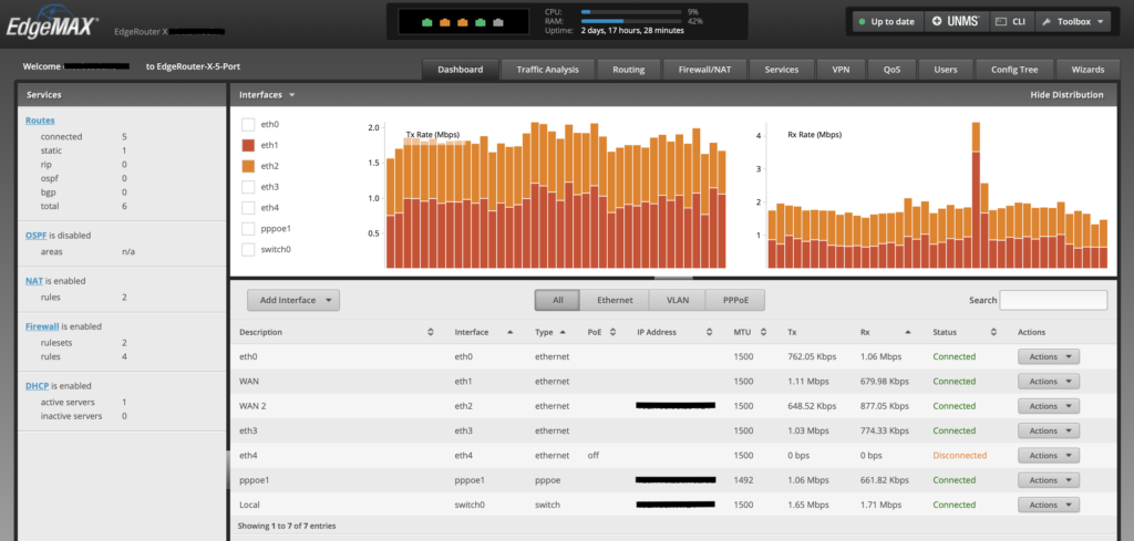 Come ho spiegato qui, l’idea è stata quella di far funzionare due connessioni insieme in modalità load balancing e fail over, due termini tecnici che in pratica definiscono il bilanciamento del traffico della rete casalinga tra una connessione e l’altra (50:50) attraverso il router (load balancing) e lo spostamento di tutto il traffico verso una connessione nel caso in cui l’altra non sia funzionante (fail over).