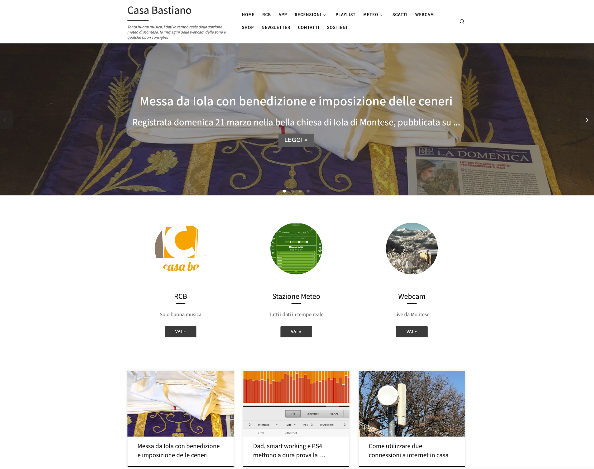 E così è nata la nuova home page che mi piace un sacco con lo slider con immagini grandi degli ultimi 4 articoli pubblicati, i 3 pulsanti per le sezioni principali RCB, Stazione Meteo e Webcam e poi i vari box per gli articoli con relativa immagine e testo di anteprima che compare con il mouseover.