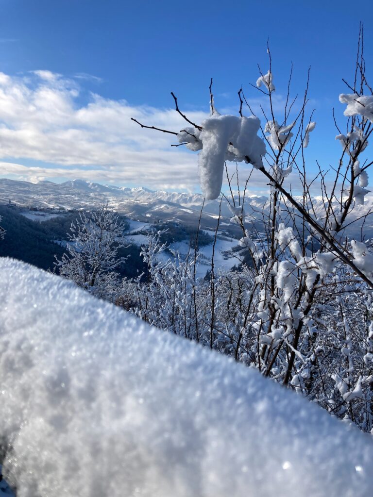 Per Natale era molto desiderata, ma non è arrivata. Tra l’ultimo dell’anno e il primo ci doveva essere almeno 1 metro di neve, ma abbiamo raggiunto l’incredibile temperatura di 19 °C. Finalmente, nella notte tra il 5 e il 6, la Befana ci ha portato un po’ di neve fresca che ha imbiancato meravigliosamente tutto il paesaggio.
