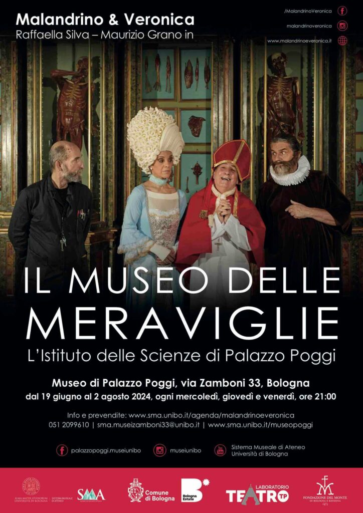 Lo spettacolo con cui lo storico duo comico bolognese accompagna i visitatori del museo è da vedere perchè è un mix di nozioni storiche facilitate sulle varie opere esposte unito a diverse situazioni comiche in cui, insieme agli attori Raffaela Silva e Maurizio Grano, Malandrino e Veronica prendono ispirazione dalle collezioni e dai personaggi quali il naturalista Ulisse Aldrovandi e lo scienziato militare Luigi Ferdinando Marsili per creare scenette molto divertenti.