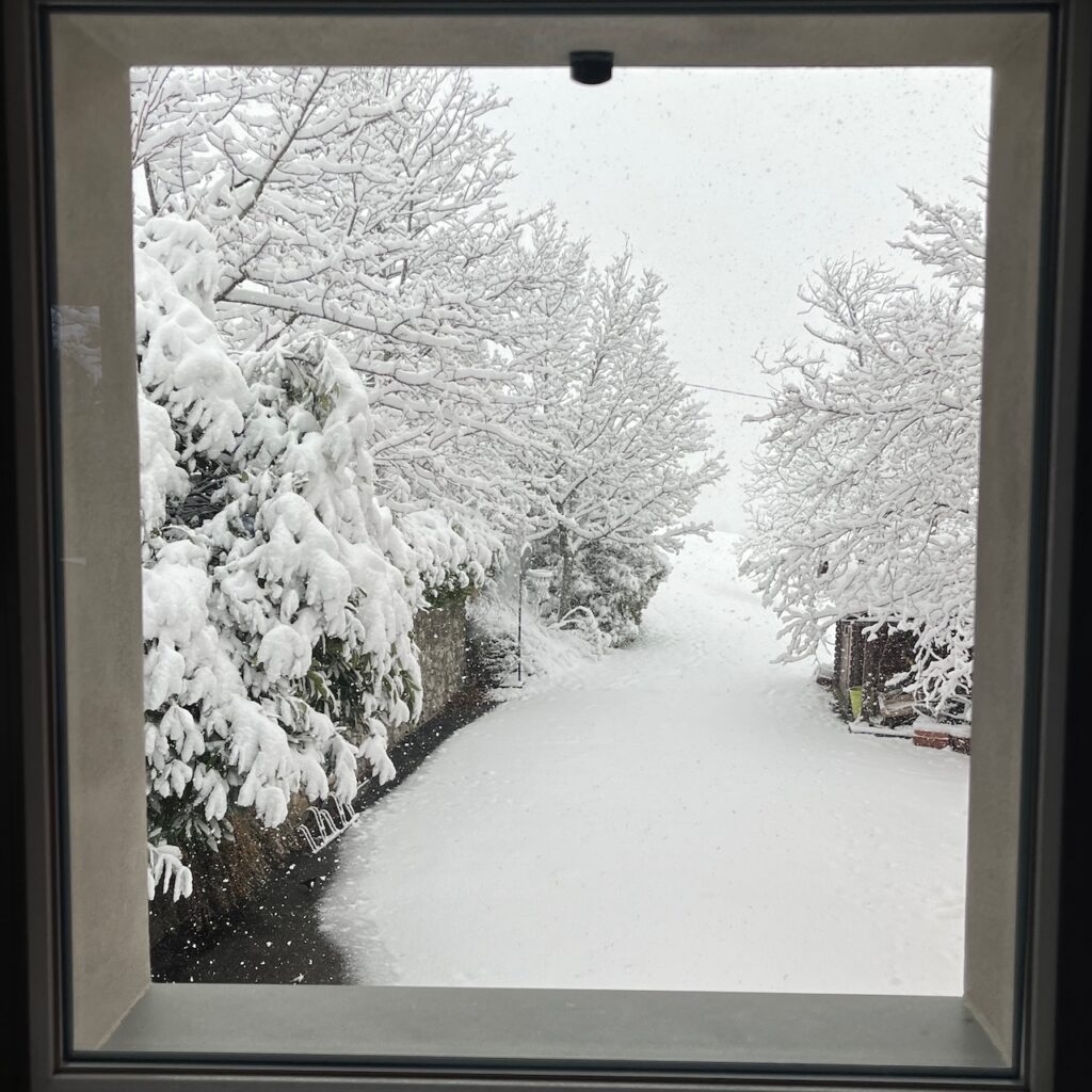 Questa mattina ci siamo svegliati con un tipico paesaggio invernale molto natalizio, non sembra quasi vero!