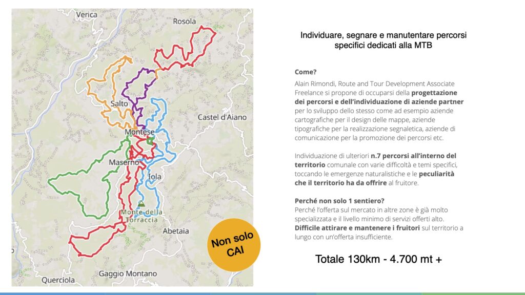 Questi sono i risultati del progetto sentieri MTB Montese che mira a individuare, segnare e tenere mantenuti percorsi specifici dedicati alla mtb diversificando la rete sentieristica comunale tra sentieri a piedi e mtb con l’obbiettivo ultimo di attirare più visitatori sul territorio e facilitare la fruizione dei sentieri da parte dei cittadini.